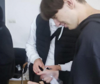 Преподаватели НФ БГТУ им. В.Г.Шухова Чегодаев И. В. и Лаптев Р.А вместе с ребятами получили возможность попрактиковаться в наложении турникетов для остановки кровотечений.